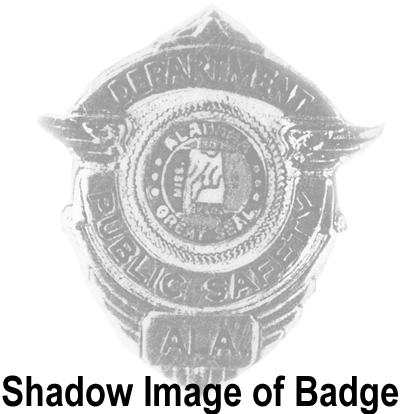 | This retro-inspired badge for the Department of Public Safety in Alabama features small straight wings near the top on both sides. |