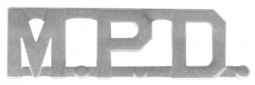 | Enhance your uniform with this impressive handcrafted "M.P.D." letter combination. The letter style shown is used to spell out the word. |