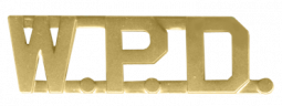 | Enhance your uniform with this impressive handcrafted "W.P.D." letter combination. The letter style shown is used to spell out the word. |
