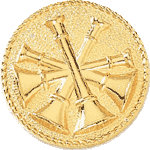 | This detailed badge features an eagle at the top with spread wings, feathered leaves up both sides, with a center ring for lettering that sits atop a five point star. If you would like plain star points order the B1107. |