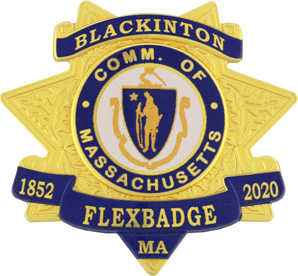 | Seven point star FlexBadge with decorative Reverse Enamel ribbon panels. |