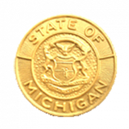 | Exquisite Michigan state seal with no lettering around the rim. This seal can be used as a lapel pin by adding two clutch back nail attachments, or use it as a stunning center seal on your badge. |