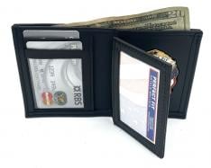 Black Leather Badge and Double ID Case with Credit Card Slots
